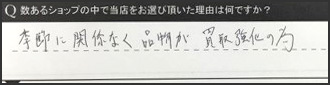 数あるショップの中で当店をお選びいただいた理由はなんですか?