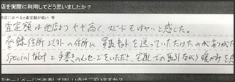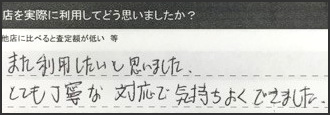 他店に比べると査定額が高かったので、今後も高額買取をお願いします。 -